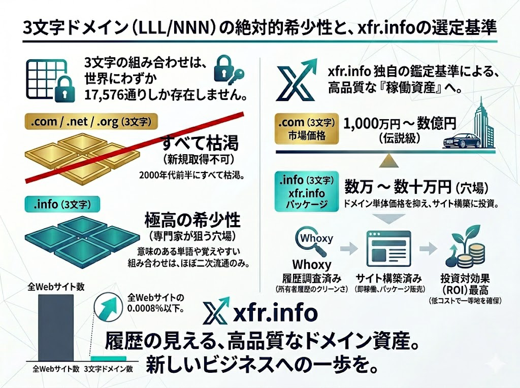 「17,576」という数字は、世界のWebサイト数(約20億以上)に対して、わずか 0.0008% 以下の選ばれたドメインであることを意味します。